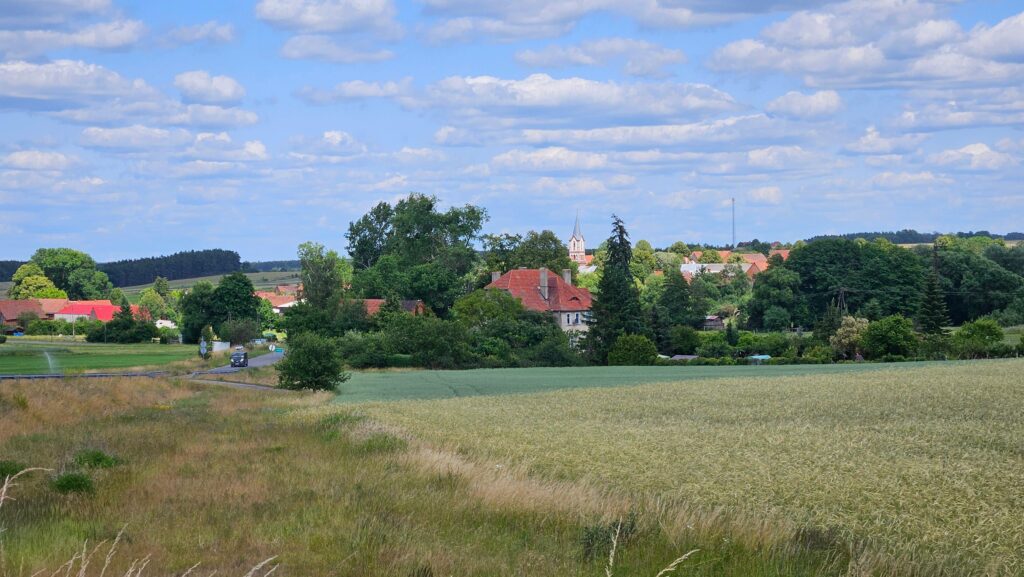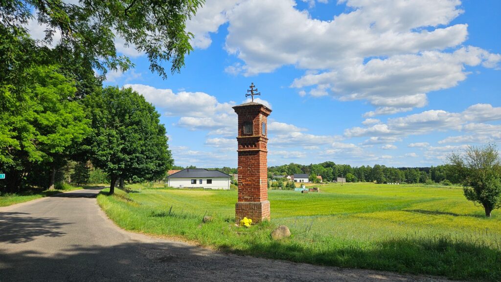 I kolejny, czwarty już wiadukt przed nami. Jedziemy prosto, a szkoda, bo wioska po prawej – Glińsk – ma kilka ciekawych zabytków, a drogi nie nadkłada się zbyt wiele. 700 metrów dalej skrzyżowanie z krzyżem, przy którym, skręcając w prawo, także dotrzemy do wyżej wspomnianej wioski.