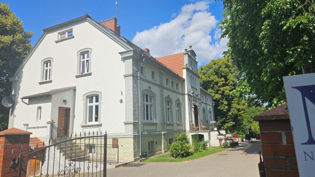 Po przekroczeniu mostu wracamy do polskiej rzeczywistości. Na szczęście bruk zostaje zastąpiony asfaltem. Wkraczamy do wsi Nowy Dworek. Jak sama nazwa wskazuje, jest tutaj dworek. Obecnie w budynku funkcjonuje ośrodek leczenia uzależnień.