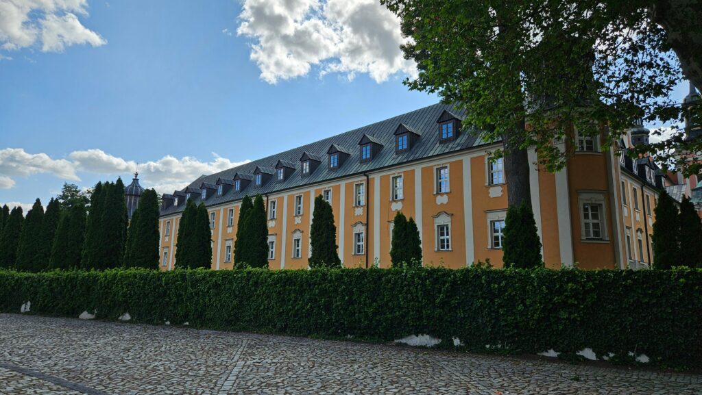 Z tego miejsca jest doskonały widok na seminarium duchowne, jest to dawny klasztor cysterski, który powstał w XIII wieku. Brukowana droga doprowadza nas do tajemniczego budynku – jest to stacja kolejowa, jedna z dziewięciu na linii 375.