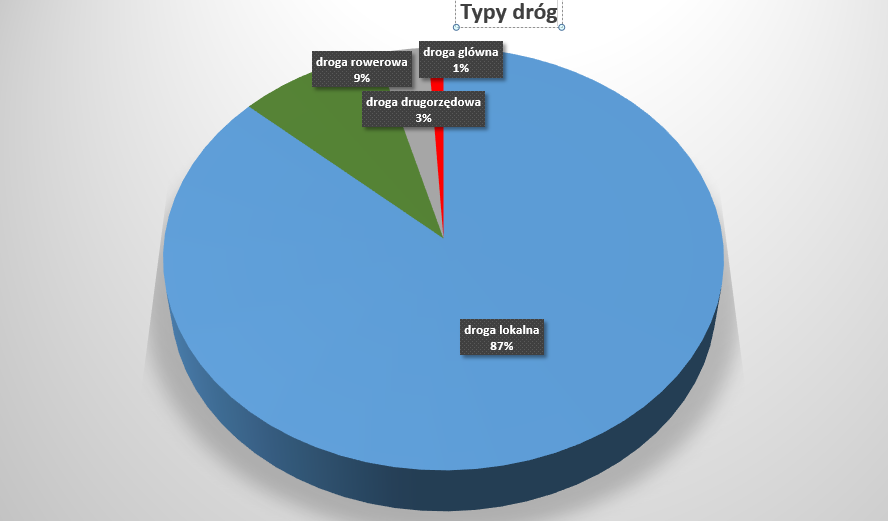 Udział dróg rowerowych to tylko9 %, ale dróg z udziałem aut nie ma praktycznie wcale.